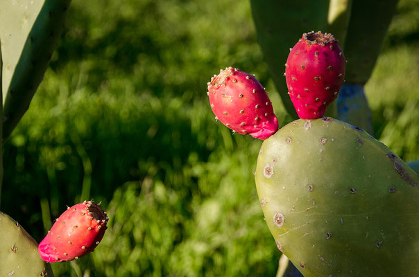 Kakteen, die schönen großen, sind für mich die Verheißung von Sonne und Wärme. Daher war ich begeistert, dass unser Grundstück bereits einige der Exemplare des echten Feigenkaktus in stattlicher Größe und herrlich pinken Kaktusfeigen beherbergt.